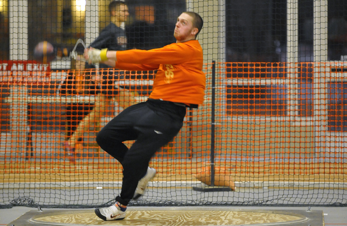 Justin Welch led the way by winning the weight throw with a NCAA automatic qualifying toss of 72'02.25.